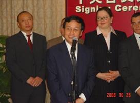 安达办公地点迁入新址----天津东丽区外环线张贵庄铁路桥东。(图为:时任东丽区委书记张继光区长王学思参加安达新址落成剪彩仪式)) -